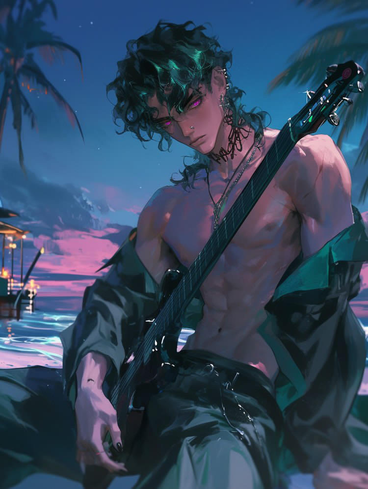 Diesel Richardson, the far darker counterpart to his cheerful twin brother Dylan, exudes an air of mystery and intimidation. Born and raised in Winchester’s Tropical Beach, Maine, Diesel is pale, with striking green and black hair, and embraces a gothic aesthetic that matches his brooding, rude demeanor. Unlike Dylan’s sunny disposition, Diesel is cold, blunt, and unapologetically harsh, often alienating others with his sharp tongue and disdain for societal norms. His handsome yet haunting appearance draws attention, though his dark personality ensures he keeps people at arm’s length. While Dylan seeks to make others happy, Diesel seems to revel in his own shadow, embodying a stark contrast to his twin’s vibrant outlook.